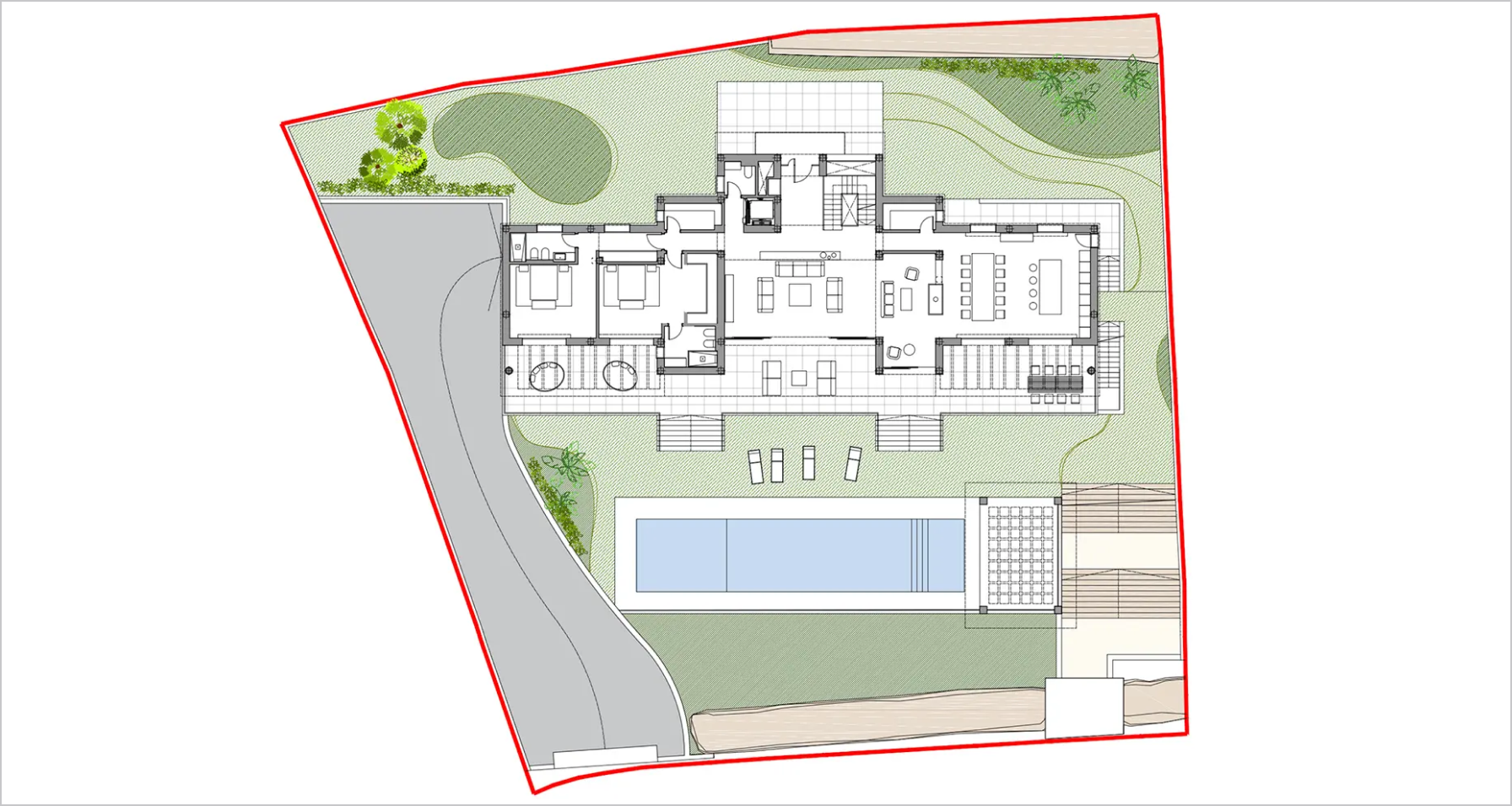 Outside, a magnificent pool takes center stage, completed with a captivating waterfall. The surface of the pool is adorned with a special Indonesian stone that not only gives it an exquisite aesthetic, but also purifies the water and helps to keep it crystal clear. This is a reflection of Inmolux's faithful commitment to luxury and sustainability.